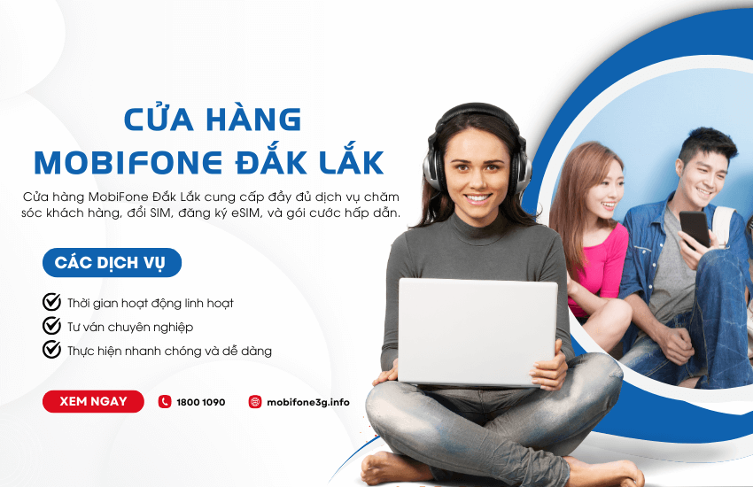 Cửa hàng MobiFone Đắk Lắk là điểm giao dịch uy tín tại trung tâm Buôn Ma Thuột, phục vụ nhu cầu đăng ký dịch vụ, làm lại sim, nâng cấp eSIM và tư vấn các gói cước hấp dẫn. Địa …